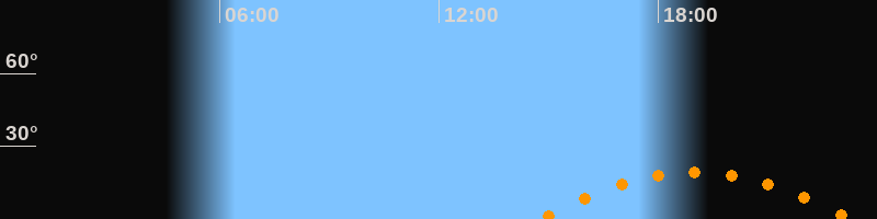 | Aufgang | 14:43 Uhr im Südosten (αAz = 122°) |
