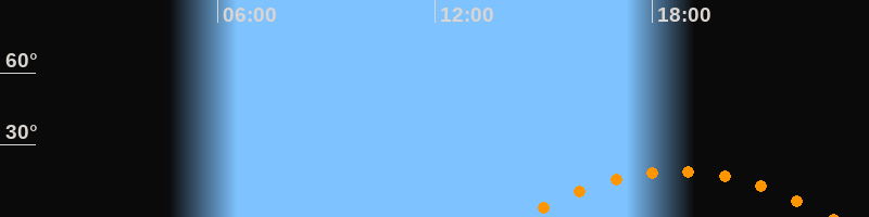 | Aufgang | 14:24 Uhr im Südosten (αAz = 122°) |