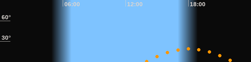 | Höchster Stand (Kulmination) | 18:06 Uhr (h = 19,2°) |
