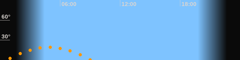 | Untergang | 09:09 Uhr im Südwesten (αAz = 238°) |