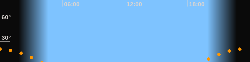 | Untergang | 03:58 Uhr im Südwesten (αAz = 238°) |
