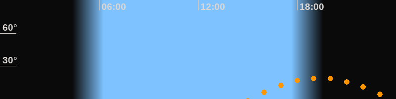 | Untergang | 23:39 Uhr im Südwesten (αAz = 238°) |