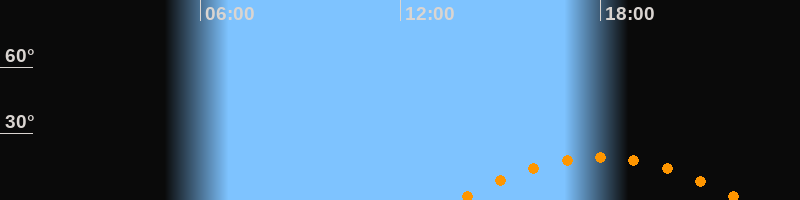 | Aufgang | 13:41 Uhr im Südosten (αAz = 122°) |