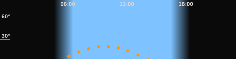 | Höchster Stand (Kulmination) | 10:38 Uhr (h = 19,2°) |