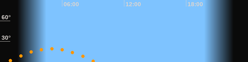 | Untergang | 09:14 Uhr im Südwesten (αAz = 238°) |