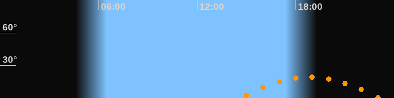 | Aufgang | 14:33 Uhr im Südosten (αAz = 122°) |