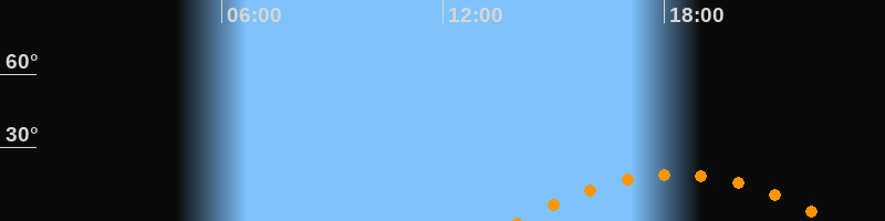 | Höchster Stand (Kulmination) | 18:19 Uhr (h = 19,2°) |