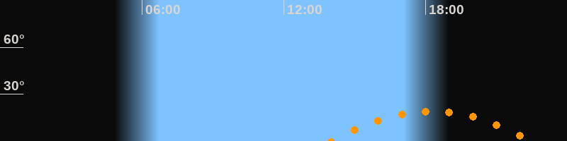 | Höchster Stand (Kulmination) | 18:15 Uhr (h = 19,2°) |