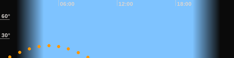 | Untergang | 09:15 Uhr im Südwesten (αAz = 238°) |