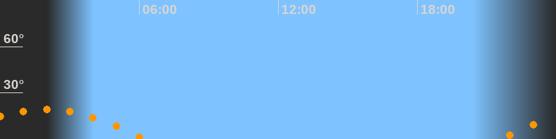 | Untergang | 06:14 Uhr im Südwesten (αAz = 238°) |