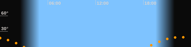 | Untergang | 03:05 Uhr im Südwesten (αAz = 238°) |