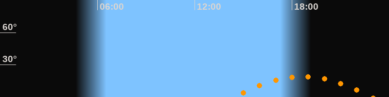 | Aufgang | 14:23 Uhr im Südosten (αAz = 122°) |