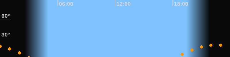 | Aufgang | 18:19 Uhr im Südosten (αAz = 122°) |