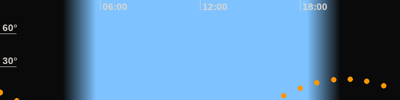 | Aufgang | 16:23 Uhr im Südosten (αAz = 122°) |