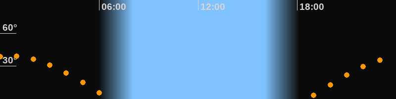 | Aufgang | 18:32 Uhr im Osten (αAz = 89,3°) |