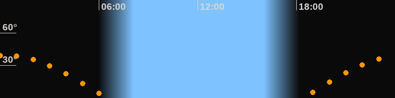 | Untergang | 06:30 Uhr im Westen (αAz = 270,7°) |