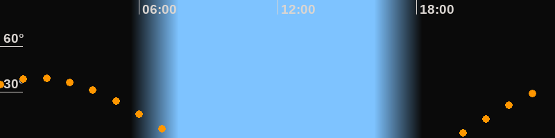 | Aufgang | 19:34 Uhr im Osten (αAz = 89,3°) |