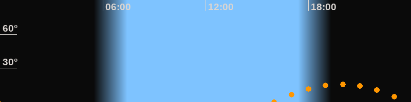 Untergang23:47 Uhr im Südwesten (αAz = 231,9°)