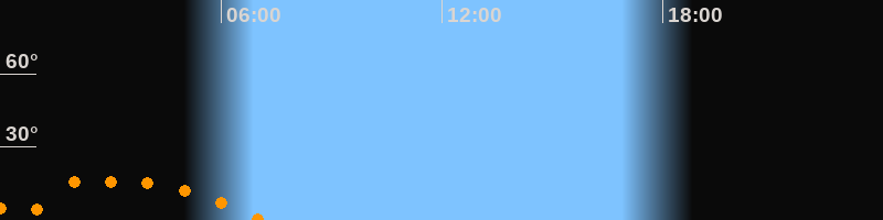 Aufgang23:14 Uhr im Südosten (αAz = 128,1°)