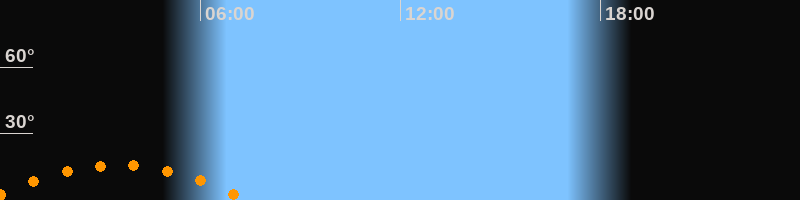 Aufgang23:32 Uhr im Südosten (αAz = 128,1°)