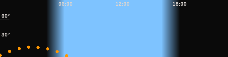 Aufgang23:28 Uhr im Südosten (αAz = 128,1°)