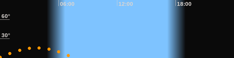Aufgang23:44 Uhr im Südosten (αAz = 128,1°)