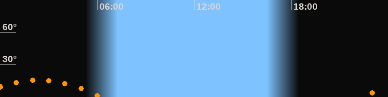 Aufgang22:22 Uhr im Südosten (αAz = 128,1°)