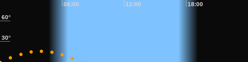 Aufgang23:57 Uhr im Südosten (αAz = 128,1°)