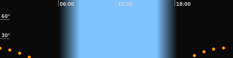 Aufgang19:21 Uhr im Südosten (αAz = 128,1°)