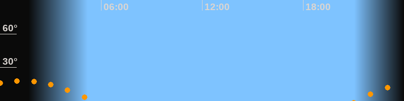 | Untergang | 05:31 Uhr im Südwesten (αAz = 236,3°) |