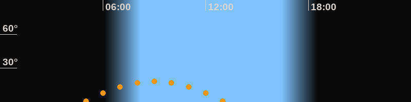 | Höchster Stand (Kulmination) | 09:00 Uhr (h = 18,3°) |