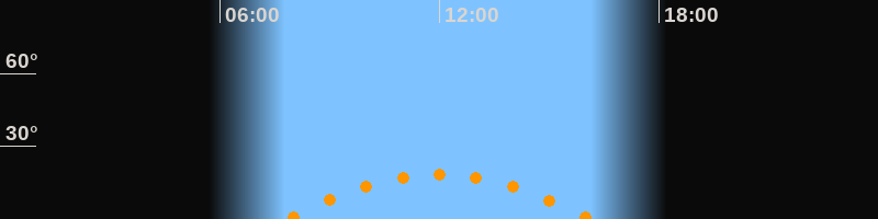 | Höchster Stand (Kulmination) | 11:58 Uhr (h = 18,3°) |
