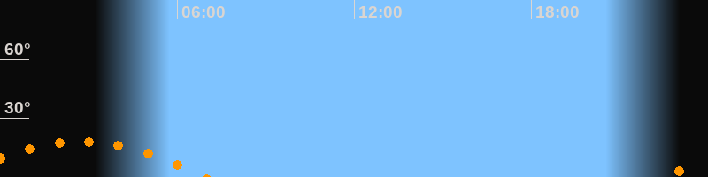 | Untergang | 06:56 Uhr im Südwesten (αAz = 236,3°) |