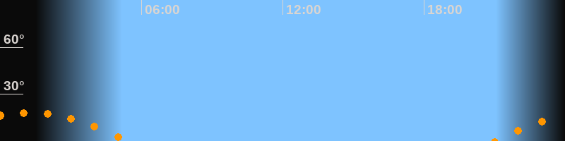 | Untergang | 05:26 Uhr im Südwesten (αAz = 236,3°) |
