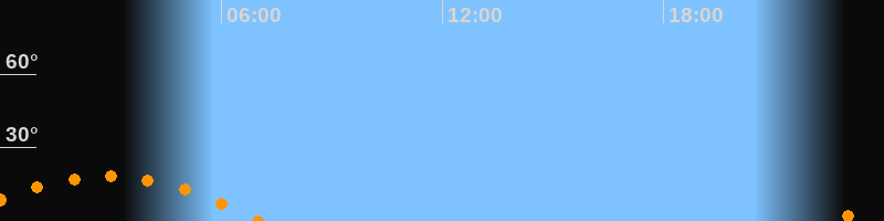| Untergang | 07:05 Uhr im Südwesten (αAz = 236,3°) |