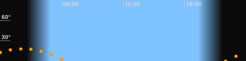 | Untergang | 06:23 Uhr im Südwesten (αAz = 236,3°) |