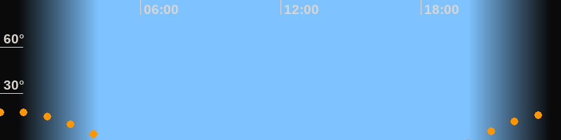 | Untergang | 04:34 Uhr im Südwesten (αAz = 236,3°) |