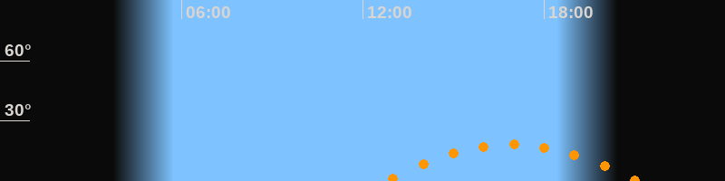 | Höchster Stand (Kulmination) | 16:54 Uhr (h = 18,3°) |
