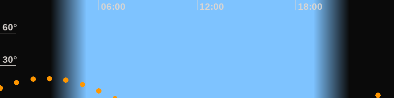 | Untergang | 07:01 Uhr im Südwesten (αAz = 236,3°) |