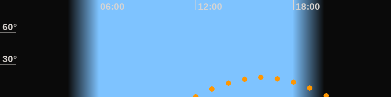 | Aufgang | 11:53 Uhr im Südosten (αAz = 123,7°) |