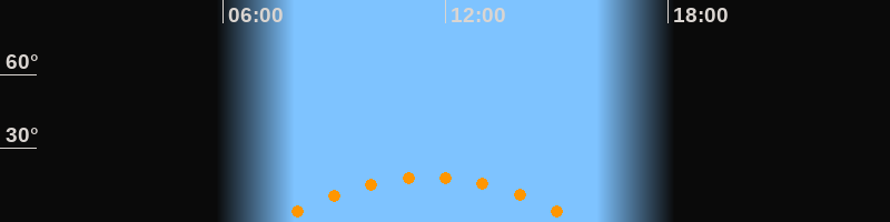 | Höchster Stand (Kulmination) | 11:30 Uhr (h = 18,3°) |