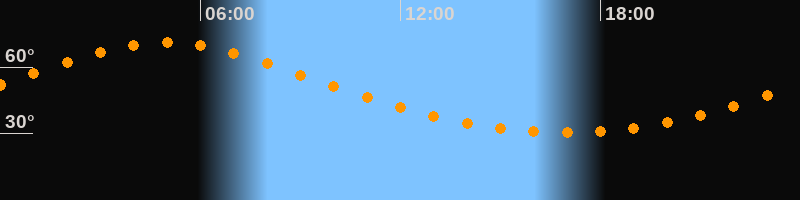 Höchster Stand (Kulmination)04:56 Uhr (h = 71°)