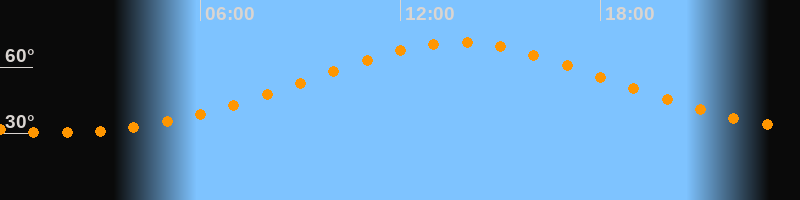 Höchster Stand (Kulmination)13:45 Uhr (h = 71°)