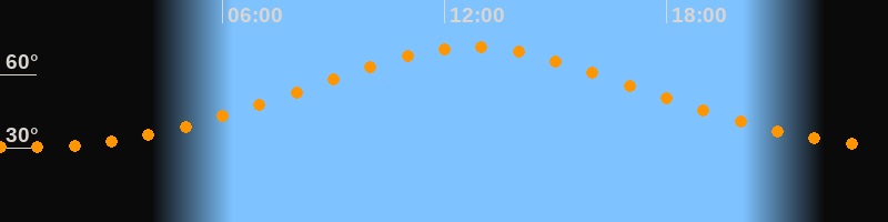 Höchster Stand (Kulmination)12:45 Uhr (h = 71°)