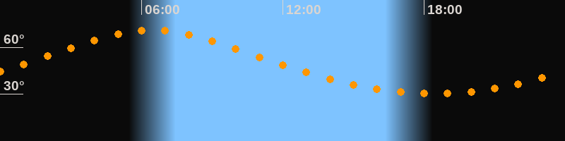 Höchster Stand (Kulmination)06:26 Uhr (h = 71°)