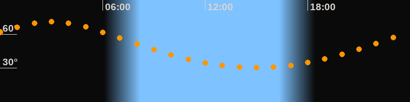 Höchster Stand (Kulmination)03:00 Uhr (h = 71°)