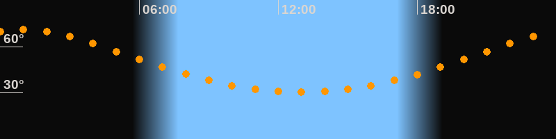 Höchster Stand (Kulmination)01:02 Uhr (h = 71°)