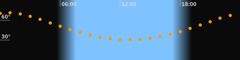 Höchster Stand (Kulmination)00:46 Uhr (h = 71°)