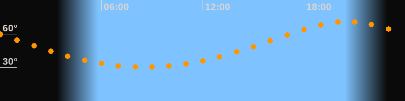 Höchster Stand (Kulmination)20:32 Uhr (h = 71°)