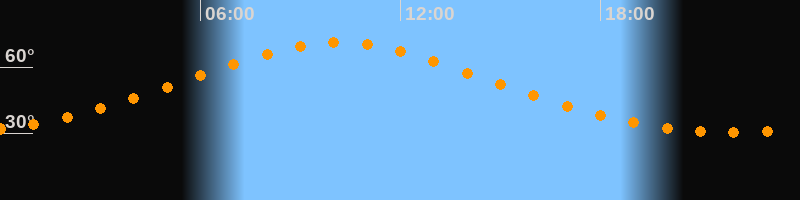 Höchster Stand (Kulmination)10:06 Uhr (h = 71°)